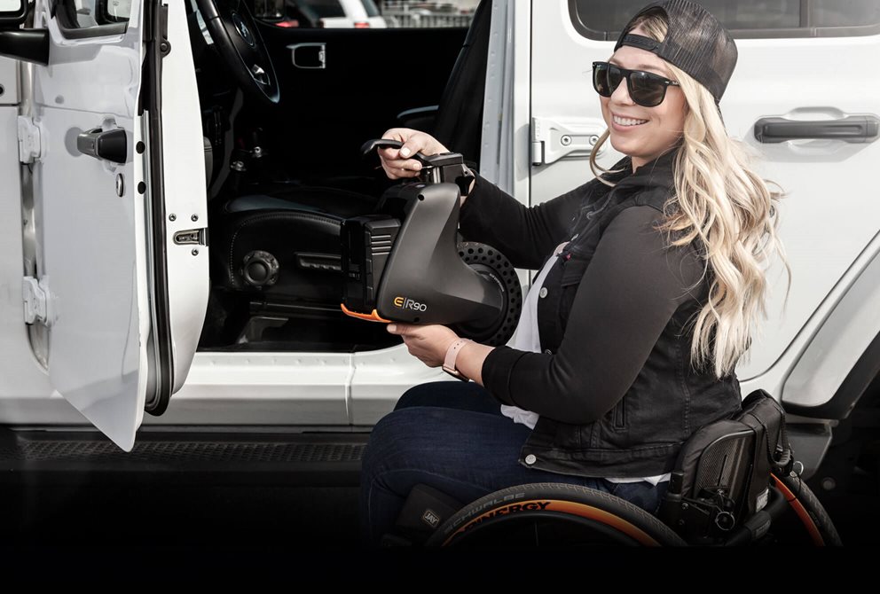 Reimagine your ride with the Empulse R90, designed to fit most rigid and folding wheelchairs. A durable yet lightweight bracket is fastened to the chair and remains on the chair while the R90 can be easily detached.
